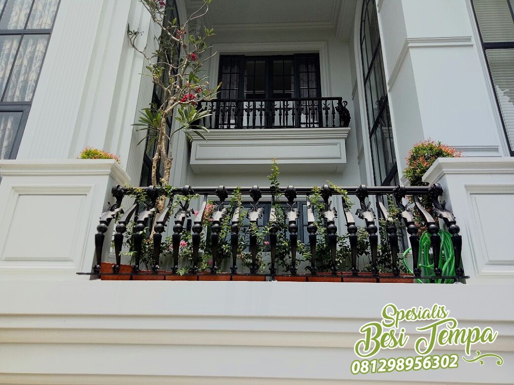 Jika menggunakan railing balkon besi tempa yang tampak kokoh mungkin terlihat terlalu besar, maka alternatifnya memakai railing balkon klasik ini, dengan desain unik klasik.